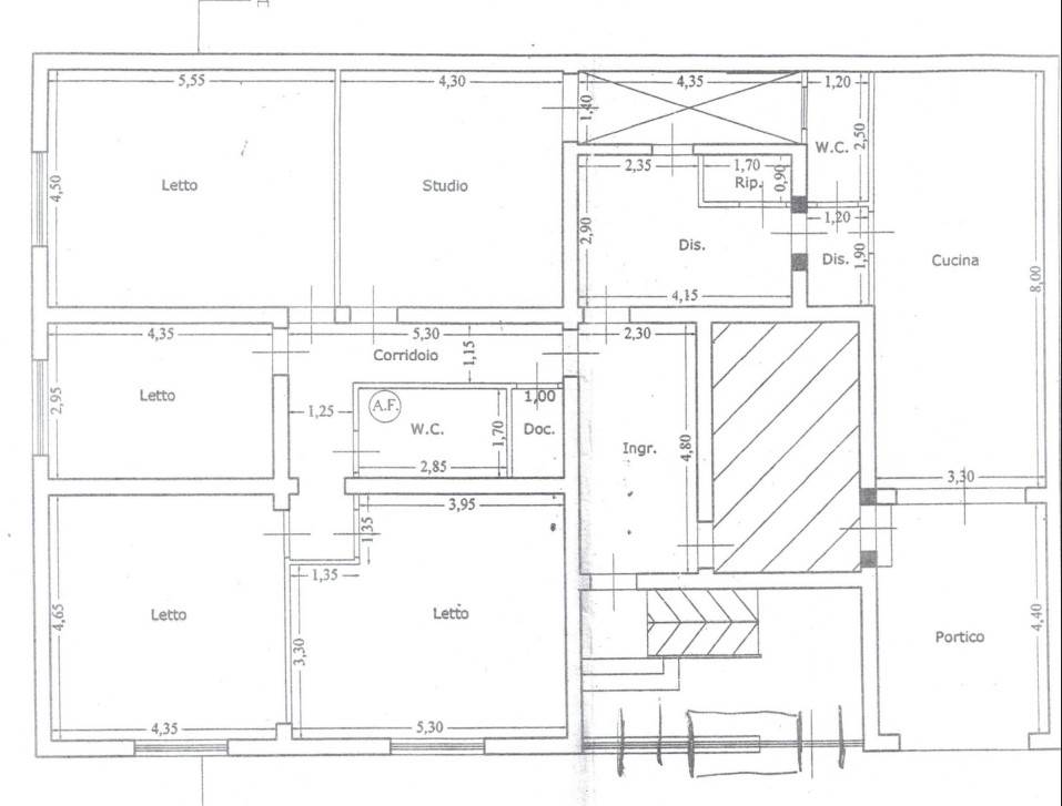L'immobile è composto da sette vani totali suddivisi rispettivamente in: ingresso, cucina abitabile, soggiorno, quattro camere da letto doppie, due servizi, lavanderia, ripostiglio.