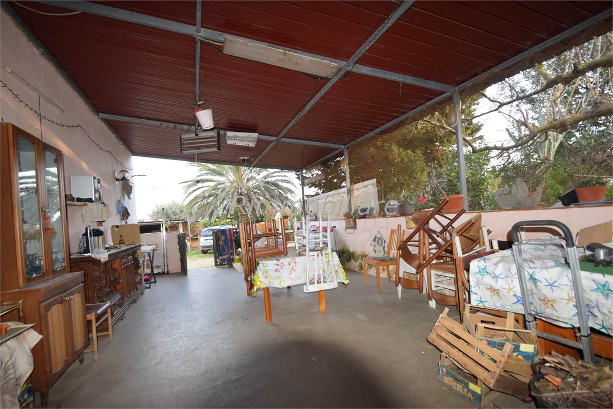 Il tutto si completa con lo spazio esterno composto da una veranda ideale per trascorrere le giornate all'aperto, e dall'ampio terreno in parte contornato da alberi d'ulivo, palme e piante di ogni genere.